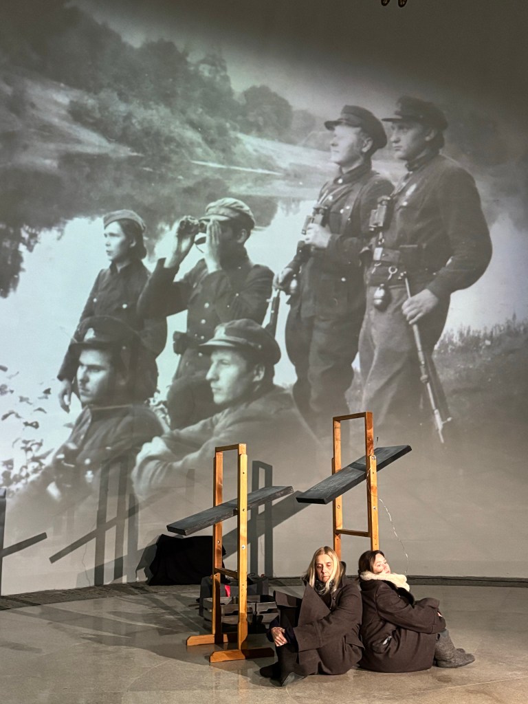 Spektaklyje naudojamos ištraukos iš partizano Liongino Baliukevičiaus -Dzūko ir Justino Lelešiaus-Grafo dienoraščių